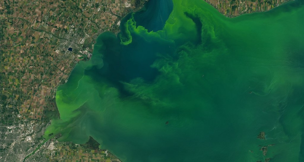 Abb.1. Durch Stickstoffverschmutzung verursachte Algenblüte im Lake Erie