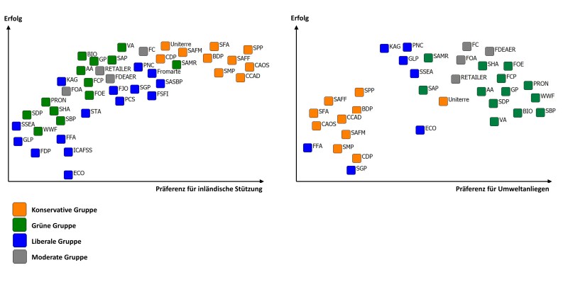 2) Eine bekannte Wortwendung besagt: «Ein Kompromiss ist dann vollkommen, wenn alle unzufrieden sind». Wir haben diese Idee umgedreht und uns angeschaut, wie erfolgreich die unterschiedlichen Akteurs-Konstellationen in den politischen Verhandlungen der AP14-17 waren. Die Hypothese dabei war, dass alle Allianzen, welche sich im Verlaufe der Reform gebildet hatten, politische Erfolge erzielten. Als «politischen Erfolg» hatten wir gewertet, wenn der Ausgang der Reform im Einklang war mit den während des Prozesses geäusserten Präferenzen des entsprechenden Akteurs.