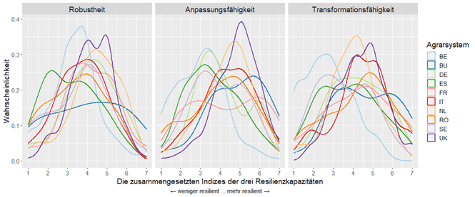 Verteilung der wahrgenommenen Resilienzkapazitäten für elf Agrarsysteme
