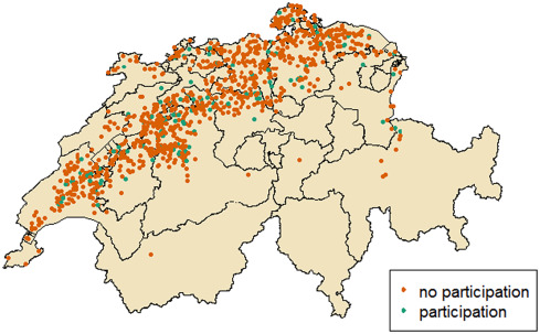 Abbildung 1. Effektive Teilnahmeentscheidung 2019/2020 an pestizidfreier Weizenproduktion von 1073 Produzenten