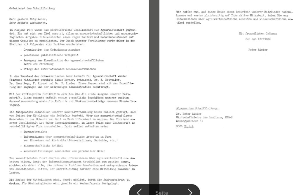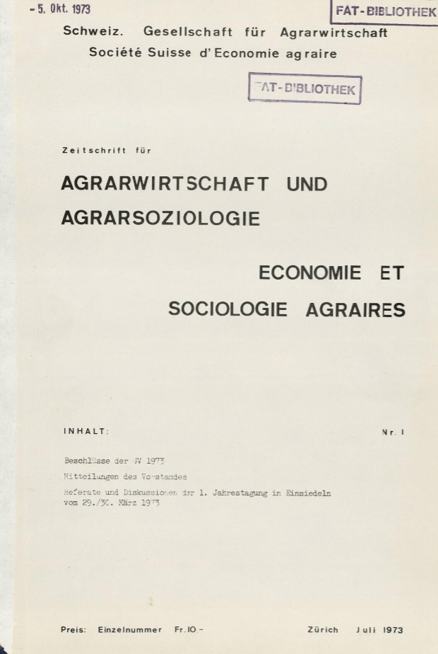 Robert Finger & Nadja El Benni*. Die Jahrbücher ‚Agrarwirtschaft und Agrarsoziologie‘ (Économie et sociologie agraires) der Schweizerischen Gesellschaft für Agrarwirtschaft und Agrarsoziologie, beginnend von 1973 wurden digitalisiert und sind nun online frei verfügbar. Die Retrodigitalisierung wurde durch die SAGW (Schweizerische Akademie der Geistes- und Sozialwissenschaften) und die Bibliothek der ETH Zürich unterstützt.