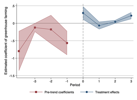 Abbildung 2: Gewächshäuser und Beschäftigung (gestaffelte Differenz-von-Differenzen Methode)