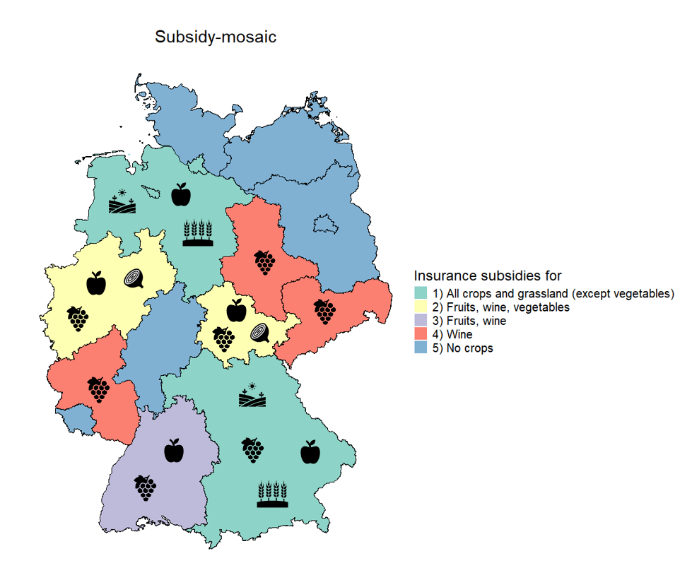 Abbildung 1. Illustration des Subventionsmosaiks für landwirtschaftliche Wetterversicherungen in Deutschland.